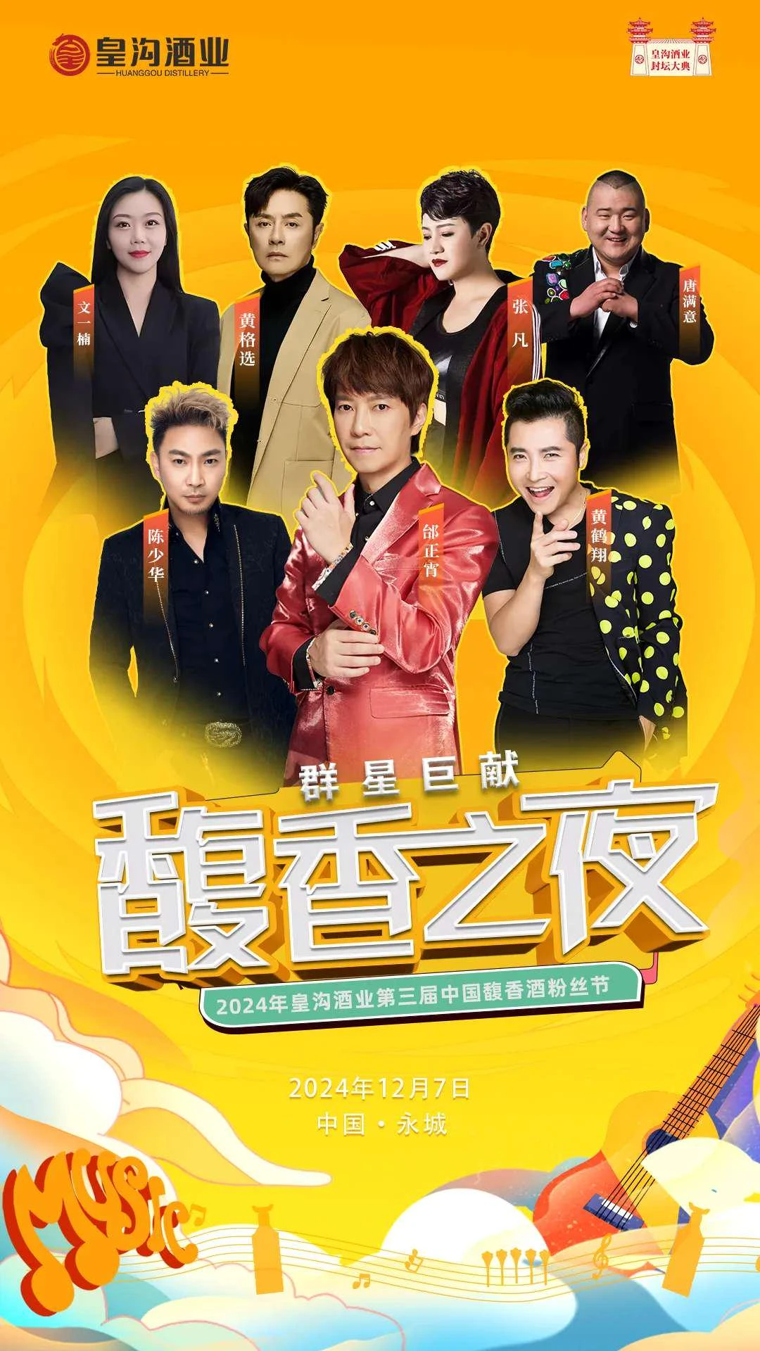 12 月 7 日,“群星巨献 馥香之夜 —— 2024 年皇沟酒业第三届中国馥香酒粉丝节”,即将于永城皇沟酒文化庄园盛大开幕