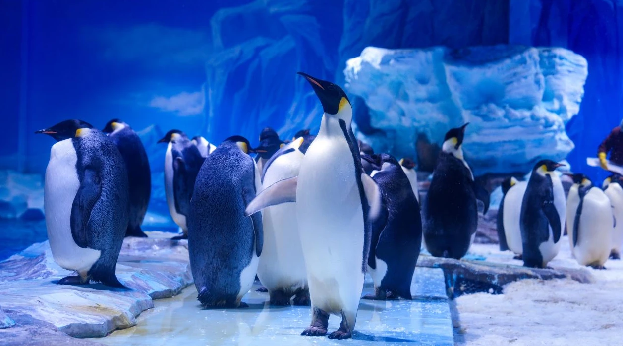 郑州海昌海洋公园的帝企鹅家族