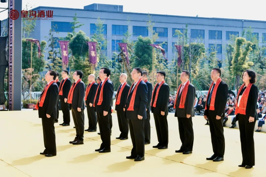 皇沟酒业董事长高全友,党委书记、副董事长张树强,副董事长张东信,党委副书记、副董事长、总经理胡晓鸣等企业核心领导遵从古法仪礼,以酿美酒天成,虔诚之心,敬盛世太平。