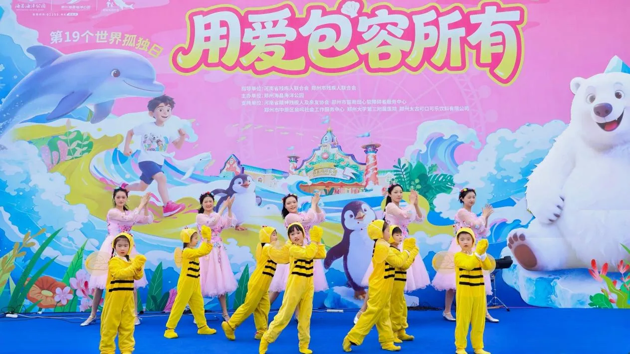 启幕仪式上,由孤独症儿童组建的乐队认真演奏着乐器,特邀嘉宾听潮阁“五马男团”和“星星的孩子”深情合唱《拥抱孤独》,舞蹈团的孩子们阳光下翩翩起舞。河南省残疾人联合会、河南省精神残疾人及亲友协会、郑州市残疾人联合会、郑州大学第三附属医院(河南省妇幼保健院)、郑州市苗雨田心智障碍者服务中心、郑州市皆福特殊儿童家长互助中心、郑州市中原区泉鸣社会工作服务中心等机构代表,以及众多媒体人士、行业嘉宾受邀出席。在全场见证下,郑州海昌郑重宣布:面向全球孤独症儿童及家庭,永久免费开放。